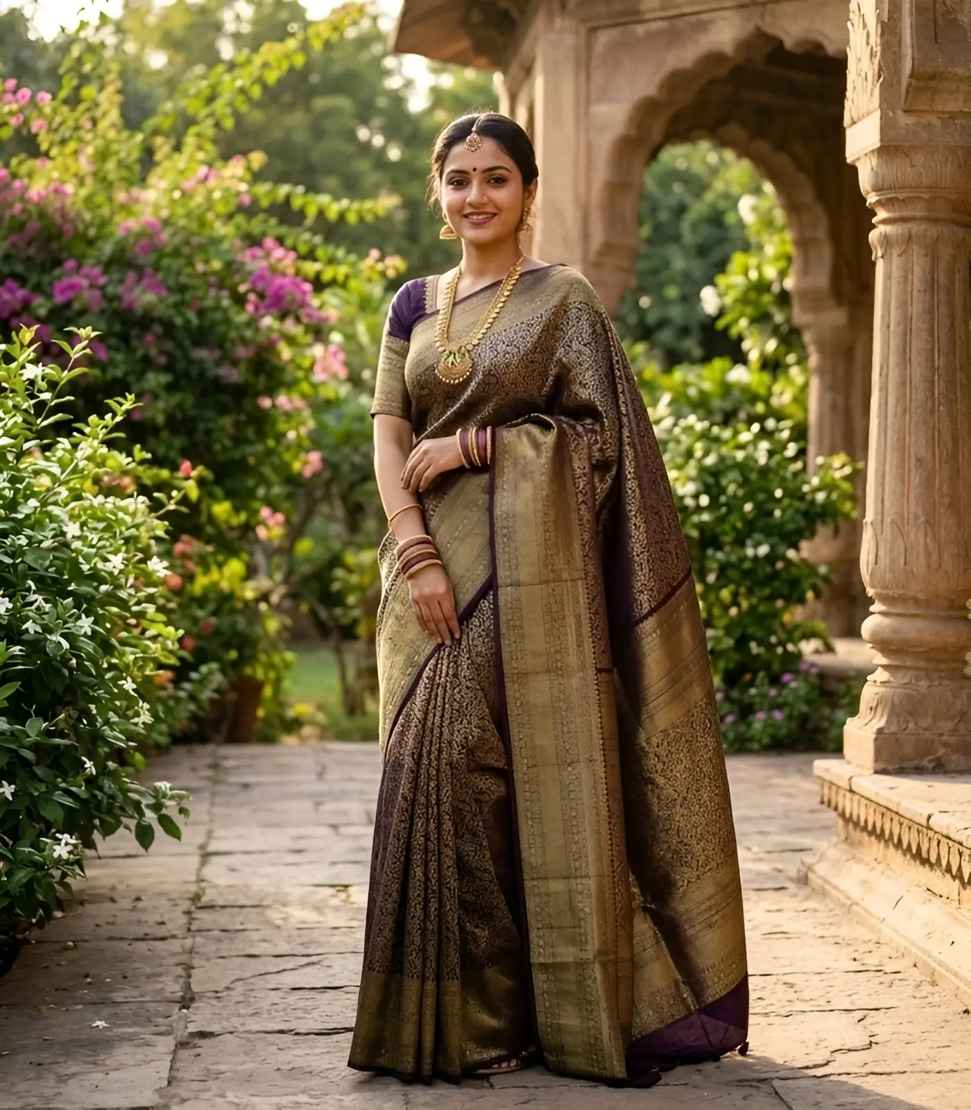 - Rich traditional zari designs