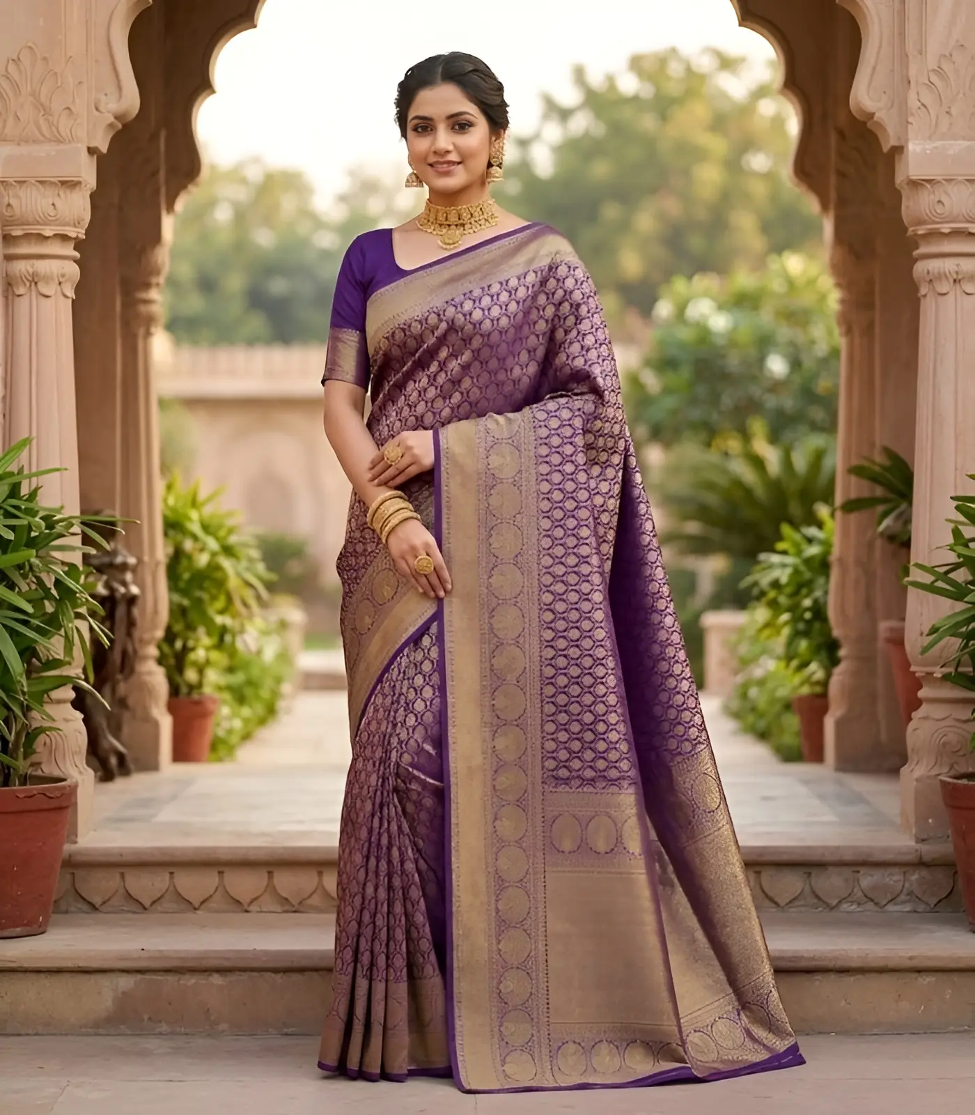 - Rich traditional zari designs