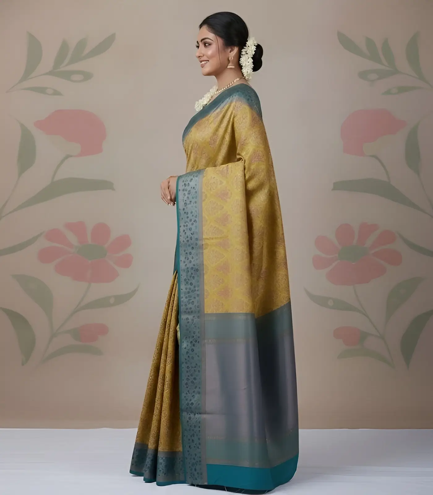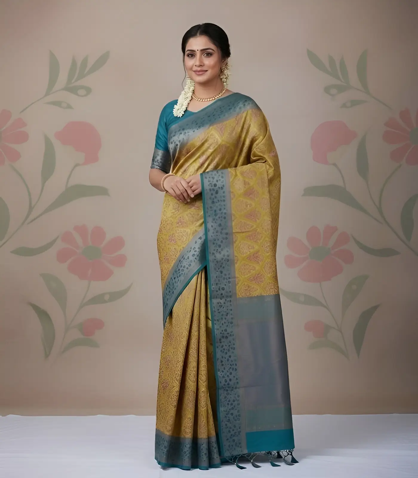 Wedding Pure Silk Saree (Mustard Yellow – Turquois Blue)