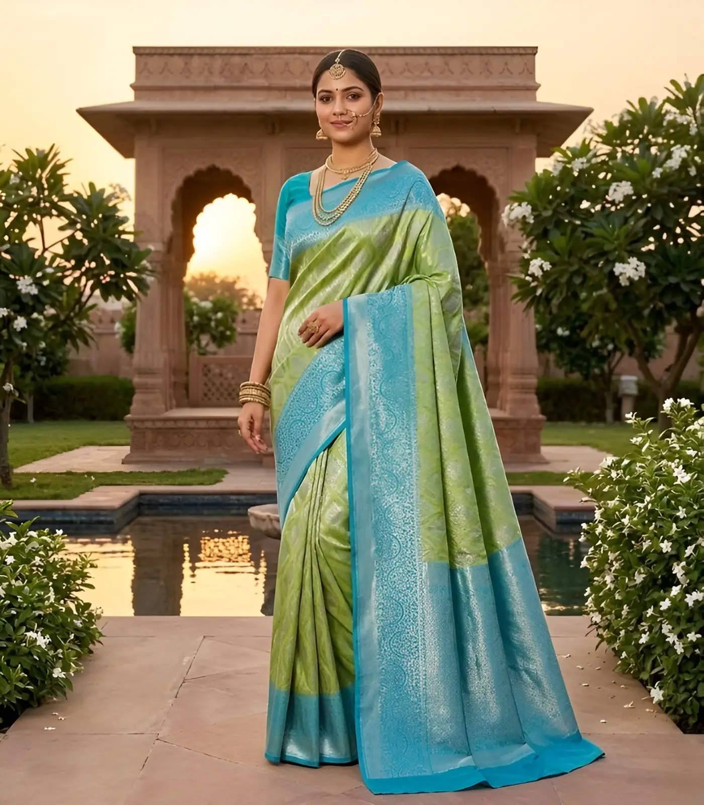 Wedding Pure Silk Saree (Parrot Green – Anandha Blue)