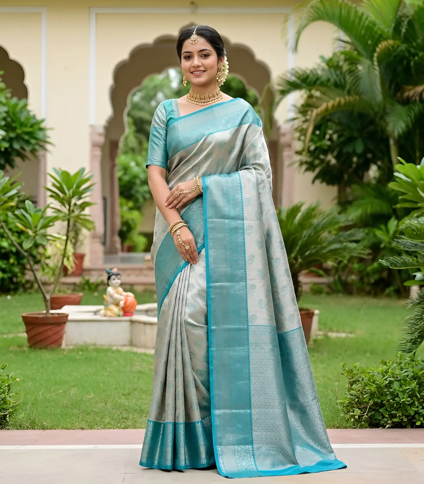 Wedding Pure Silk Saree (Silver – Anandha Blue)