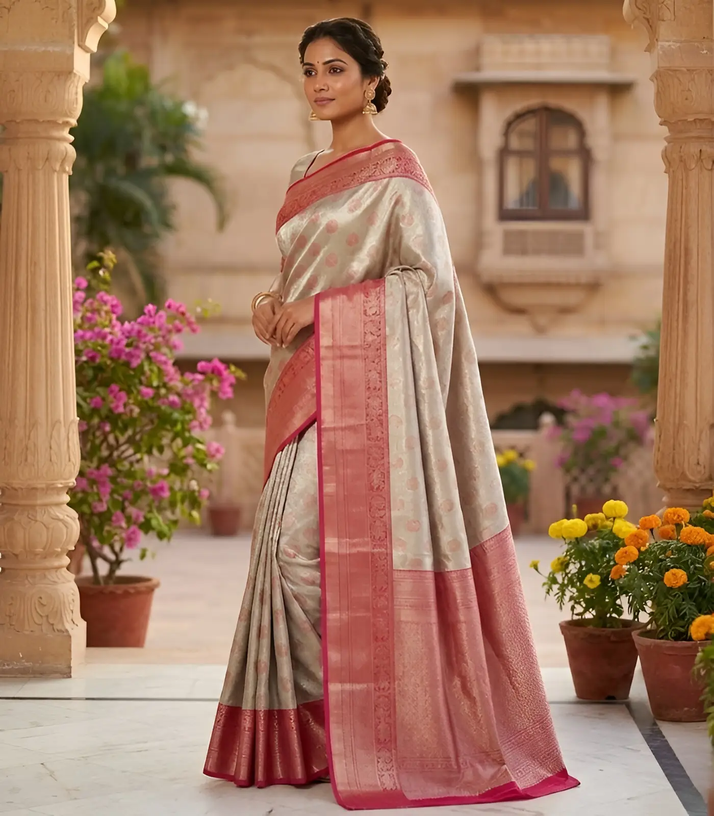 - Rich traditional zari designs